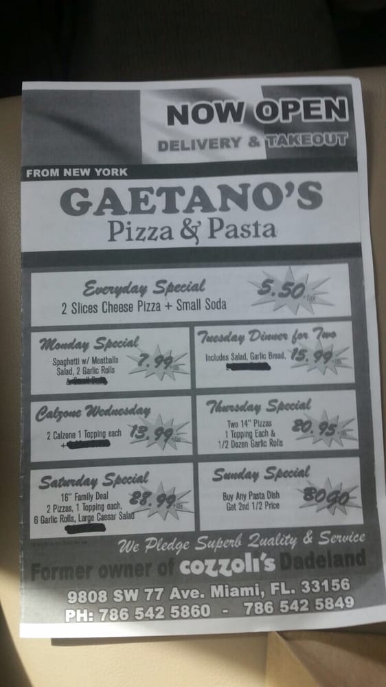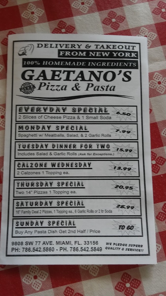 Welcome to Gaetano's Pizza & Pasta, a delightful family-owned restaurant nestled in Miami, Florida. Here, you’ll find an inviting atmosphere that echoes the charm of traditional Italian dining. The menu is a treasure trove of flavors showcasing freshly prepared dishes.